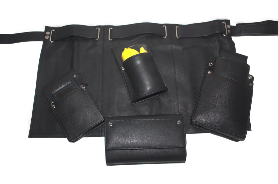 - Deze sloof kunt u zelf uitbreiden met 3 producten uit de lijst hiernaast. U bevestigt deze simpelweg aan de riem door de riem door het schort te vlechten. Let op als u er een eurokitkelnerbeurs of een koopmansbeurs bij bestelt, moeten deze in het midden gedragen worden. Dit i.v.m. de breedte van de riemlus, zie voorbeelden. Een poetsdoekholster kan eventueel ook nog extra erbij. Die kan dan achterop gedragen worden. Mocht U hulp nodig hebben bel gerust 0630156330 of 0613674373. Wij helpen u graag verder.
